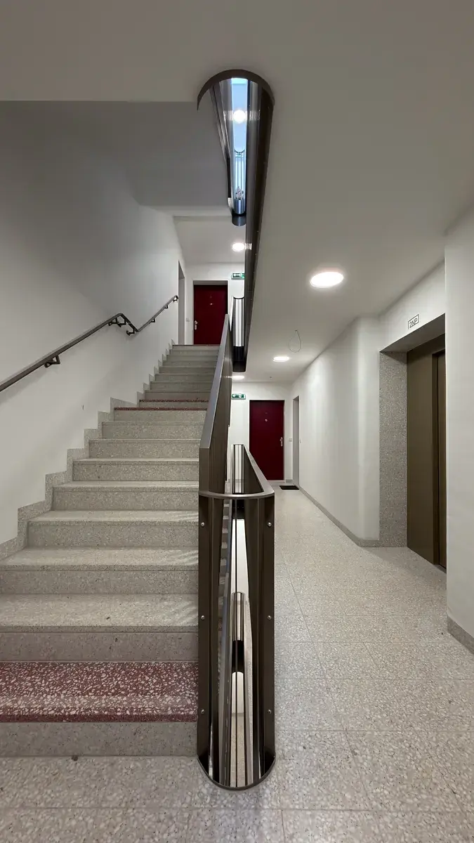 Výhodou je energetická úspornost díky hliníkovým oknům a vodovodnímu podlahovému vytápění. V domě se nachází výtah a společná kolárna.