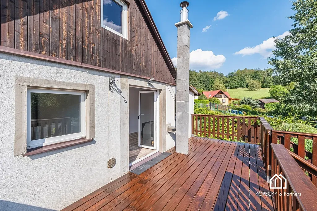 Chata je z větší části zděná (cihlová), doplněná o kvalitní přístavbu, je zateplená a osazená plastovými okny, což zajišťuje příjemné klima i nízké provozní náklady po celý rok. Dispozičně je řešena jako 3+1 s obytným podkrovím a nabízí plnohodnotný komfort pro celoroční užívání.
