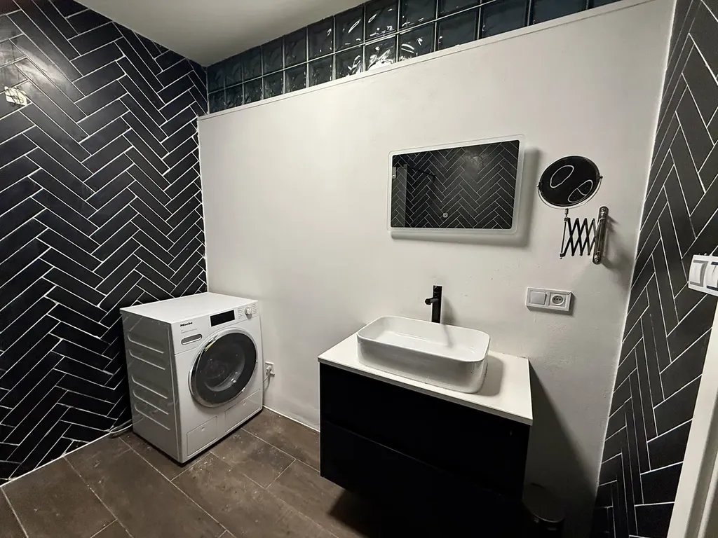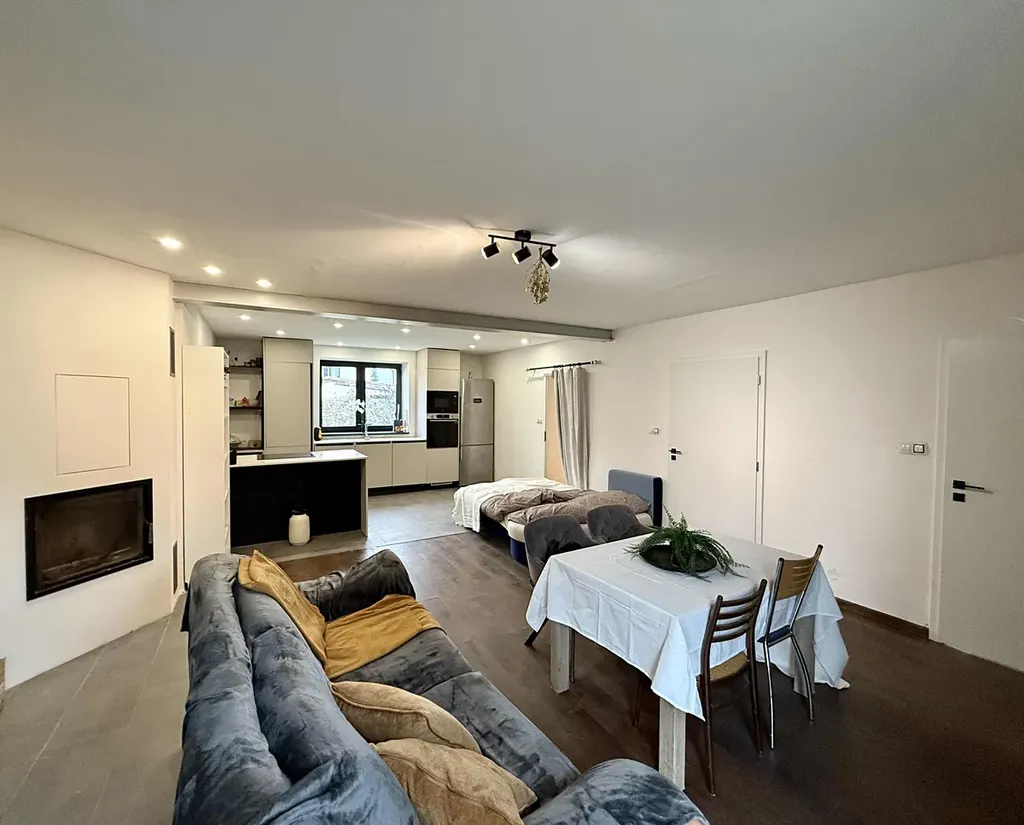 Interiér bytu tvoří prostorný obývací pokoj s krbem a kuchyňským koutem, samostatná ložnice, další oddělená místnost vhodná například pro home office, a koupelna se sprchovým koutem. Kuchyň je moderní a plně vybavená, byt disponuje podlahovým vytápěním, vlastní pračkou a vysokorychlostním internetem (100/100 Mb/s).