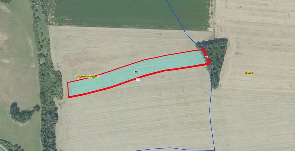 Nabízíme k prodeji atraktivní pozemek o výměře 17.419m v katastrálním území Chocenice u Břežan. Pozemek je ve výhradním vlastnictví, nachází se v klidné části katastru. Pole je v současné době obhospodařované místním zemědělským subjektem na základě pachtovní smlouvy. Nepropásněte proto příležitost ke koupi pozemku v tomto katastru.