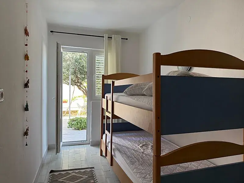 V přízemí třípodlažního domu o celkové ploše 250 m2 se nachází jednopokojový apartmán s terasou a dvoupokojový apartmán s prostornou terasou před domem. V prvním patře je velký třípokojový apartmán s terasou na severní straně domu. Ve druhém patře se nachází garsonka s velkou střešní terasou orientovanou na jih s krásným výhledem na moře a ostrovy. Na dvoře před domem je možné vybudovat bazén. Dům je zařízený a klimatizovaný a takto se i prodává.