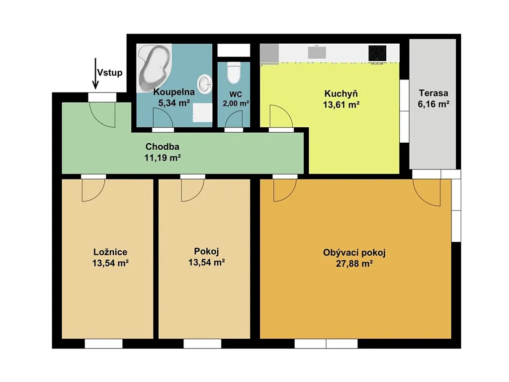 • pokoj: 13,54 m²