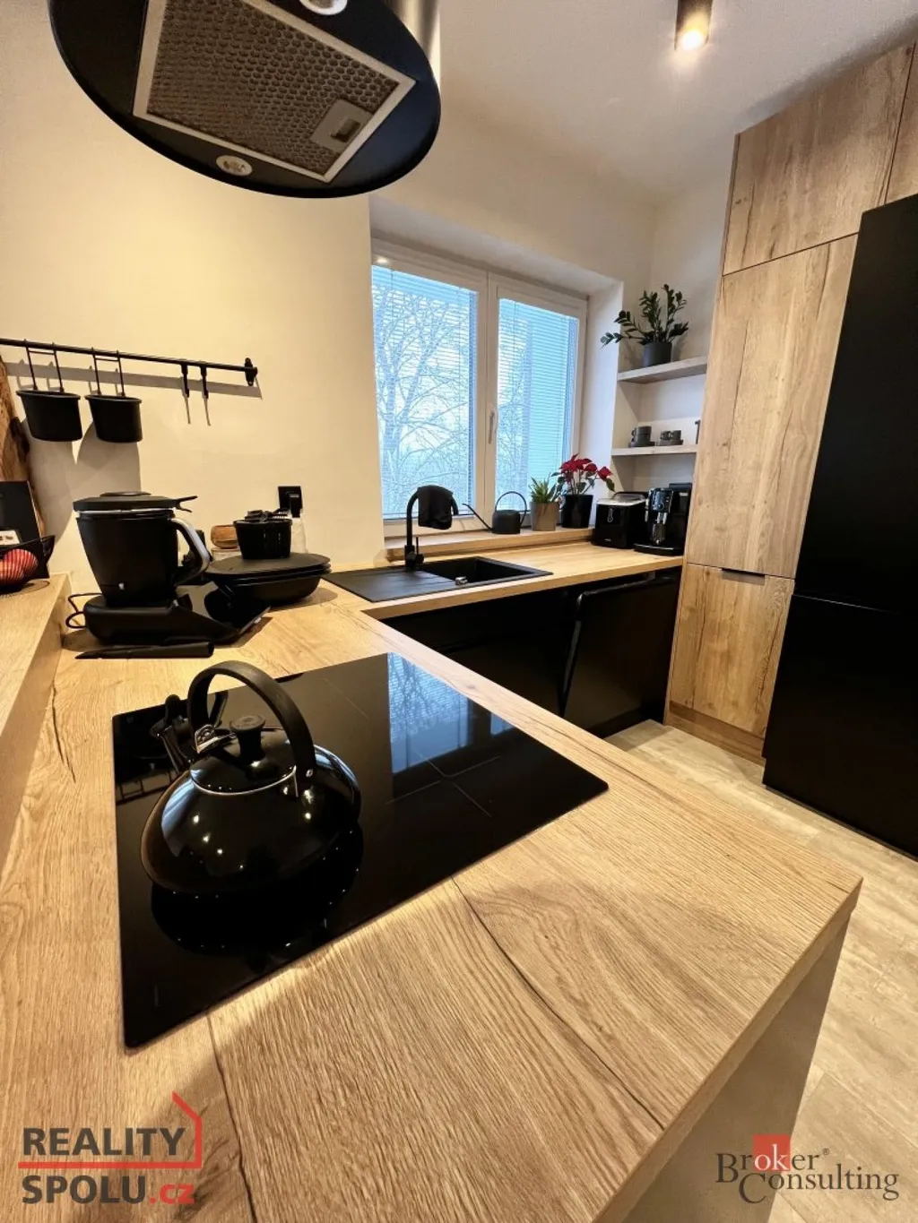 Byt je kompletně zařízený, nábytek zůstává k dispozici novým nájemníkům včetně závěsů, sedací soupravy, postele, jídelního stolu a židlí, plně vybavená kuchyň s indukční deskou, myčkou, troubou, mikrovlnkou, lednicí, klimatizací a vinotékou.