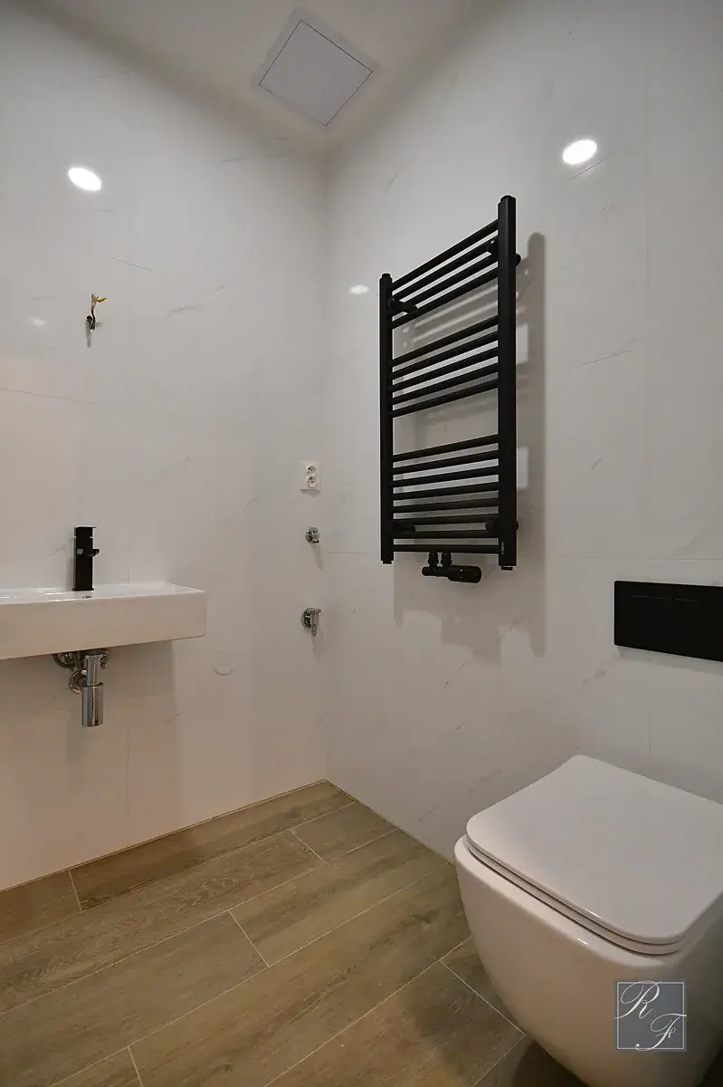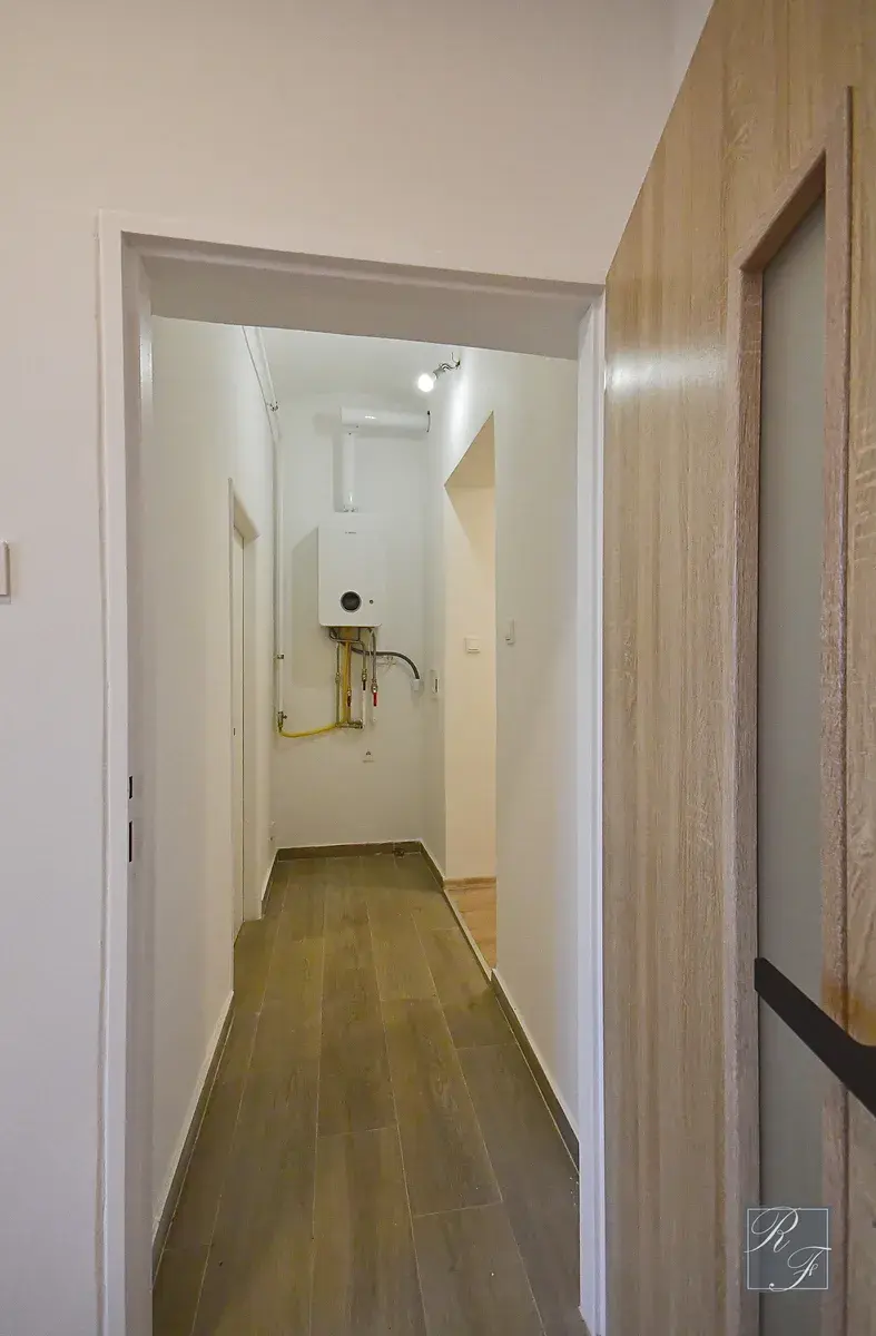 Jednotka má nové rozvody vody, elektřiny i topení. Pro vytápění a ohřev TUV je zde instalovaný moderní plynový kondenzační kotel Bosch, zaručující bezproblémový a maximálně ekonomický provoz. K tomu přispívají i plastová okna, jejichž bonusem je vzhled respektující původní charakter domu. Samozřejmostí jsou nové podlahy, koupelna i kuchyně. Nic nebylo ještě používáno. Určitě také oceníte stropní podhledy s integrovaným osvětlením. Velmi se mi líbí uspořádání bytu s velkorysými místnostmi a výškami stropů 2,9 m, které mohou interiéru poskytnout další rozměr při jeho zařizování. K jednotce náleží skladový prostor v mezipatře. Sklepní prostory jsou společné, s budoucí vizí rozdělení na jednotlivé sklepní kóje.