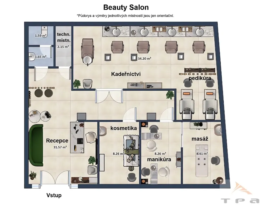 Obchodní prostor nabízí užitnou plochu 100 m², vlastni sociální zařízení, šatnu ,zavedena voda v 5 místech, ideální pro různé podnikatelské záměry, kanceláře, kadeřnictví, kosmetický salon , pedikúra manikúra , zubní ordinace , obchod s oblečením nebo jiné zaměření a nachází se na strategicky výhodné pozici v historickém lázeňském centru s dostupností autobusové dopravy. Moderní architektura a přírodní materiály dodávají prostoru elegantní vzhled a přívětivost, která jistě zaujme Vaše klienty.