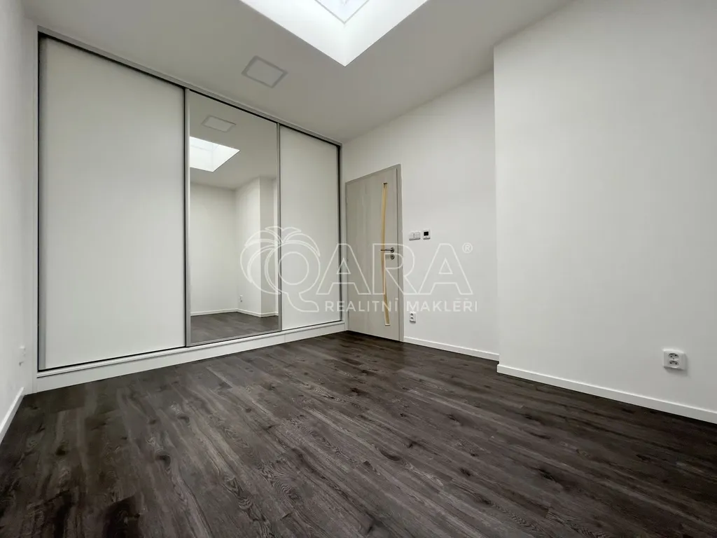 Jednotka o podlahové ploše 48 m² se nachází ve 2. nadzemním podlaží novostavby z roku 2020 (výtah v domě není). Skládá se z chodby, kde je spousta prostoru na umístění věšáků a botníku. Z chodby se dostaneme do kuchyně spojené s jídelnou a obývacím pokojem, která je zařízena kuchyňskou linkou na míru a všemi spotřebiči (vestavná lednice a mrazák, čtyřplotýnková varná deska, digestoř a elektrická trouba) a má výměru 25 m². Z kuchyně je přístupný balkon o výměře 6 m². Ložnice o výměře 12 m² je zařízena prostornou vestavěnou skříní se zrcadlem, která pojme opravdu hodně věcí a je přístupná z chodby. Koupelna společně s WC je přístupná také z chodby a je vybavena sprchovým koutem, umyvadlem, skříňkou pod umyvadlem, zrcadlem a splachovacím WC. Přípojka na pračku je v technické místnosti. Jednotka se pronajímá jako nezařízená, tudíž si ji můžete vybavit podle svých vlastních představ. Jednotka bude nově bíle vymalovaná a v kuchyni s obývacím pokojem byla 12/23 položená nová podlaha.