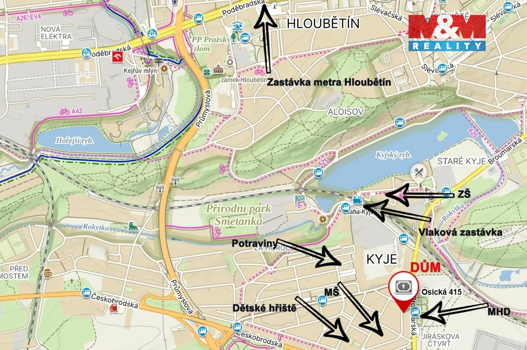 Nabízíme k prodeji samostatně stojící třípodlažní rodinný dům o užitné ploše 230 m² na pozemku 730 m² v klidné části Prahy 9 – Kyje, jen pár minut chůze od metra Hloubětín. V přízemí se nachází byt 3+kk, v 1. patře a podkroví dvě zrekonstruované jednotky 2+kk. Každý byt má samostatný vstup ze společné chodby, což zajišťuje soukromí a variabilitu využití – ideální pro vícegenerační bydlení či investiční pronájem. Dům je částečně podsklepený, vytápěný plynovým kotlem, napojený na vodovod i kanalizaci. Na pozemku je zděná garáž a dvě parkovací stání. Zahrada poskytuje klid a soukromí, vhodná pro odpočinek, hry dětí i pěstování. Oblíbená rezidenční lokalita nabízí kompletní občanskou vybavenost v docházkové vzdálenosti – školy, obchody, zdravotní služby. Výborná dopravní dostupnost MHD i autem, centrum města do 20 minut. Skvělé místo pro pohodlné rodinné bydlení i zajímavou investici. Pro více informací a domluvu prohlídky mě neváhejte kontaktovat.