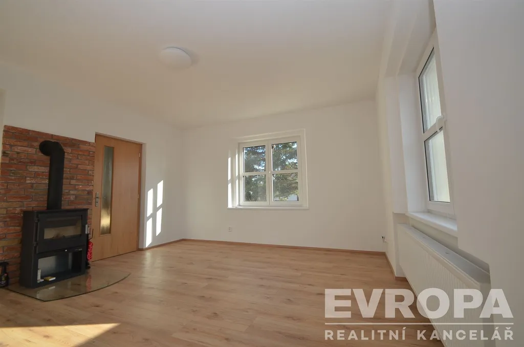 V 1. nadzemním podlaží se nachází prostorný obývací pokoj s krbem (krbové kamna budu instalovány v průběhu 14ti dnů). Dále je zde samostatná kuchyň vybavená moderní a plně zařízenou kuchyňskou linkou, s přímým vstupem na zahradu. Praktické dispoziční řešení doplňuje komora a samostatné WC. Vstup do prostorného sklepa, kde jsou velké prostory k uskladnění.