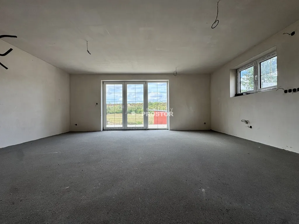 V 1. NP se nachází prostorný obývací pokoj s kuchyňským koutem, komínem pro krbová kamna a výstupem na slunnou a velkou terasu, která umožní příjemnou relaxaci přímo u obývacího pokoje, dále pokoj - plánovaný jako pracovna, technická místnost, koupelna se sprchovým koutem, samostatné WC, dvojgaráž s elektricky ovládanými vraty a důležitým průchodem do domu i zahradu, který je možné dále využít jako úložný prostor.
