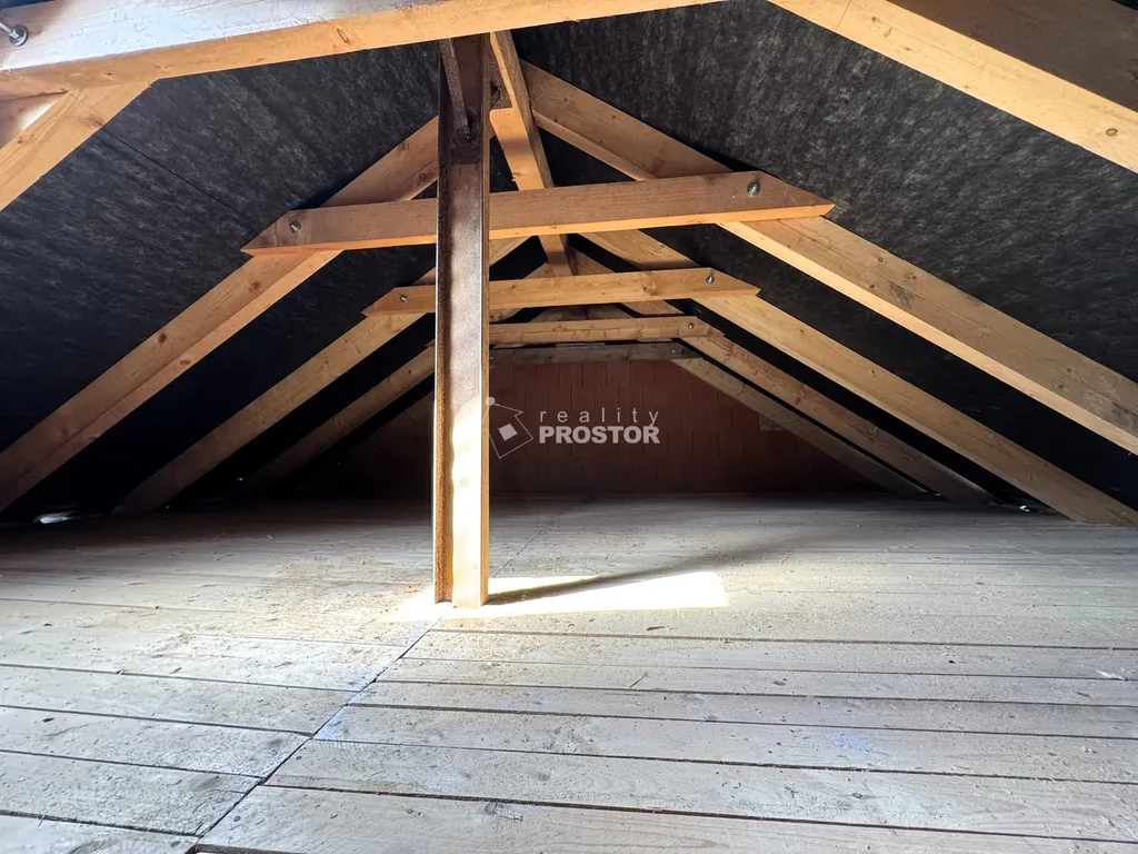 Ve 2. NP jsou tři velké ložnice z nichž je vstup na příjemně slunnou terasu s krásným výhledem do okolí (42,45m2). Dále koupelna s prostorem na sprchový kout i vanu, samostatné WC a vstup na pochozí půdu, která nabízí další úložné prostory.
