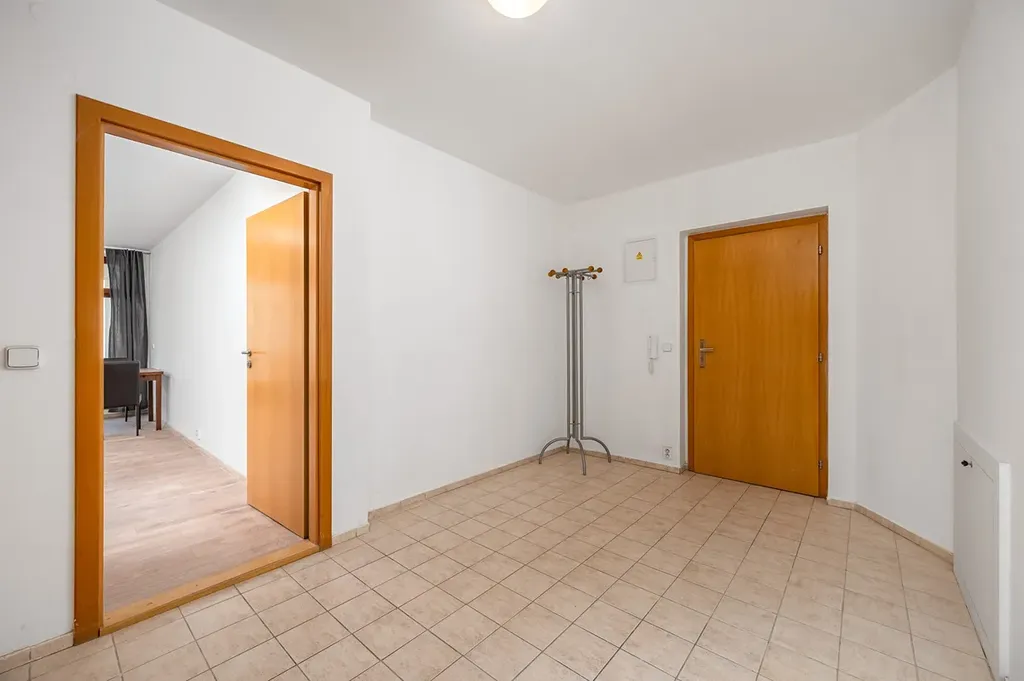 Byt disponuje kuchyňskou linkou vybavenou vestavěnými spotřebiči, jako je sklokeramická varná deska, elektrická trouba, myčka nádobí a lednice s mrazákem. Příjemným bonusem jsou vestavěné skříně v chodbě, které poskytují dostatek úložného prostoru. Koupelna je vybavena vanou a pračkou, což zajišťuje veškerý komfort pro pohodlné bydlení. Prostorný balkon orientovaný do klidného vnitrobloku je ideálním místem pro relaxaci nebo ranní kávu.
