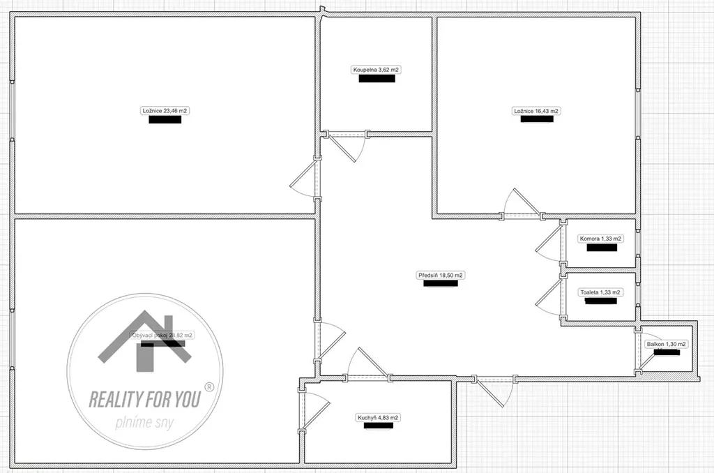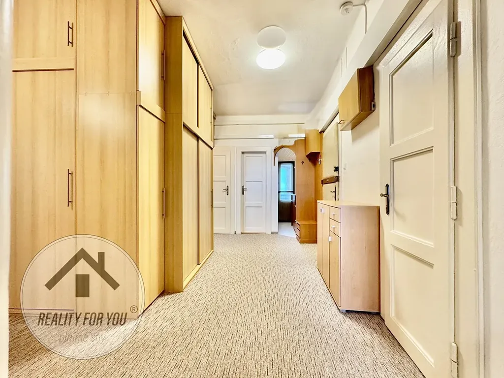 Tento byt 3+kk o výměře 98,32 m2 + balkon + sklep, se nachází v pátém nadzemním podlaží zděného činžovního domu v klidné uličce. Díky umístění je v bytě naprostý klid a soukromí. Byt nabízí prostorné místnosti (obývací pokoj - 28,82 m2 a dvě samostatné ložnice 23,46 m2 a 16,43 m2), koupelnu, samostatnou toaletu a menší balkon (1,30 m2). V bytě je dostatek úložného prostoru. V předsíni (18,50 m2) jsou vestavěné šatní skříně a komora o výměře 1,33 m2. Menší kuchyň (4,83 m2) s dostatkem přípravného prostoru. K bytu náleží sklep v suterénu domu (cca 3 m2).
