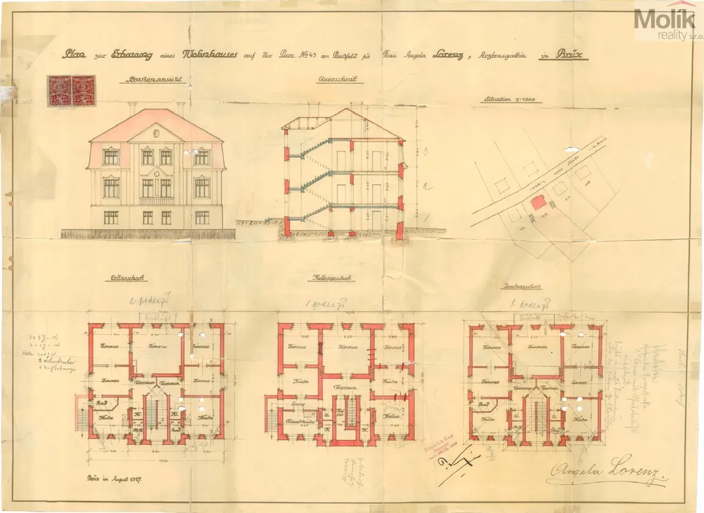 Nabízíme k prodeji prostornou a stylovou bytovou jednotku 3+1 o podlahové ploše cca 85 m, umístěnou v secesní vile z roku 1927 v klidné a velmi vyhledávané lokalitě u jezera Most. Bytovou jednotku spojuje autentický historický charakter s kvalitními technickými rekonstrukcemi a současným komfortem. Kompletně rekonstruovaná elektroinstalace. Nová dřevěná okna v původním lomeném designu, vyrobena na míru, stáří 3 roky. Původní dřevěné podlahy zachované v obytných místnostech (dle potřeby a stávajícího využití s kobercem či vinylem). V obývacím pokoji nové dubové parkety. Vytápění a ohřev teplé vody řešeno vlastním kondenzačním plynovým kotlem Geminox. V obývacím jsou moderní kachlová krbová kamna, jako alternativní zdroj vytápění. Byt je součástí vily se spoluvlastnickým podílem na objektu a zahradě o celkové výměře 1 266 m, která poskytuje dostatek soukromí, zeleně a klidového zázemí. K bytu náleží také sklepní a půdní prostory.