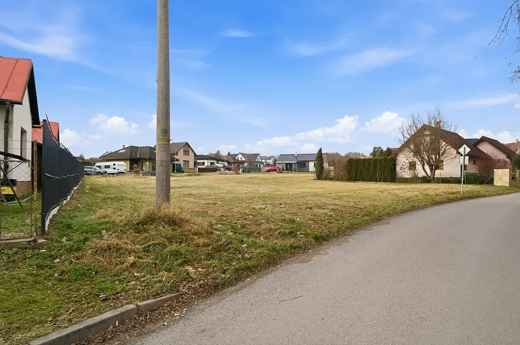 Pozemek má obdélníkový tvar o rozměrech cca 25 × 36 m, což umožňuje velmi pohodlné umístění rodinného domu i zahrady.