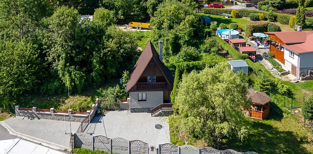 Na zahradě se nachází altánek, ideální místo pro rodinné obědy a grilování třeba čerstvých ryb, které se dají zakoupit přímo pod hrází cca 300m od chaty.