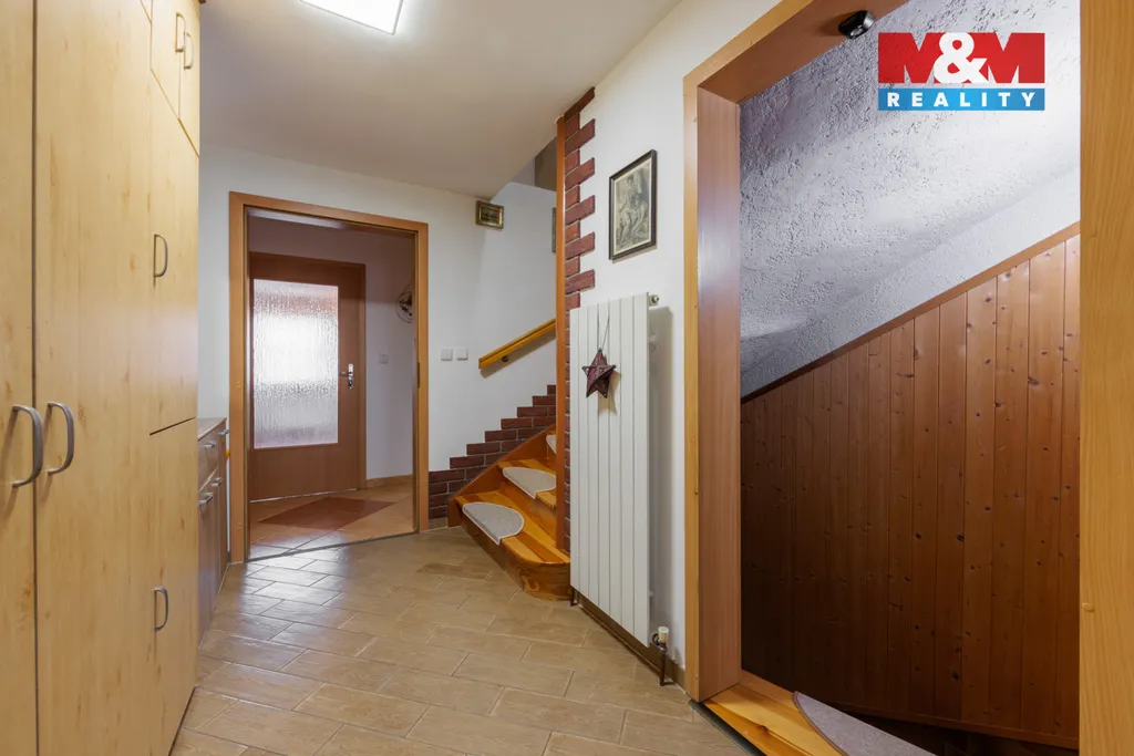 Výjimečným benefitem je obytný suterén s wellness zázemím – saunou, koupelnou, prádelnou a dostatkem úložných prostor. Další potenciál nabízí půda vhodná k vybudování dalších obytných místností. Interiér je vybaven nadstandardními materiály, kuchyňská linka na míru tvoří přirozené srdce domu. Dům disponuje dvěma kompletními soukromými koupelnami a jedním samostatným WC.