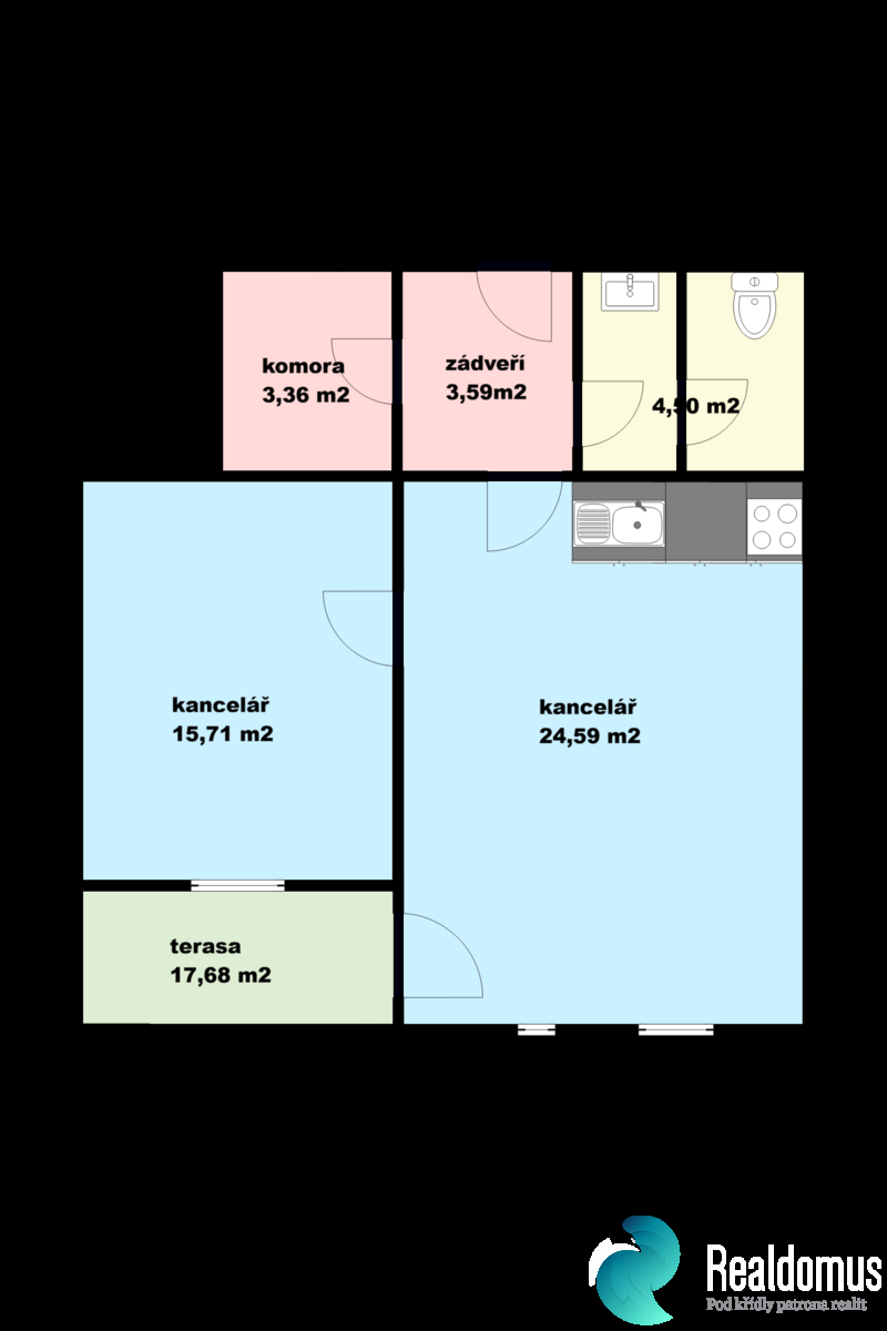 REALDOMUS Vám zprostředkuje pronájem reprezentativní kanceláře v obchodním centru umístěném v Českém Krumlově o celkové výměře 69,43 m². Nabízená kancelář je umístěna v 1.patře bez výtahu. Dispozice prostoru viz. přiložený půdorys. Kancelář orientovaná na severozápad s příjemným výhledem do zeleně. Moderně řešené interiéry s plovoucí podlahou ve výborném stavu. Reprezentativní a dobře dostupné místo u hlavní silnice s jedním parkovacím stáním.