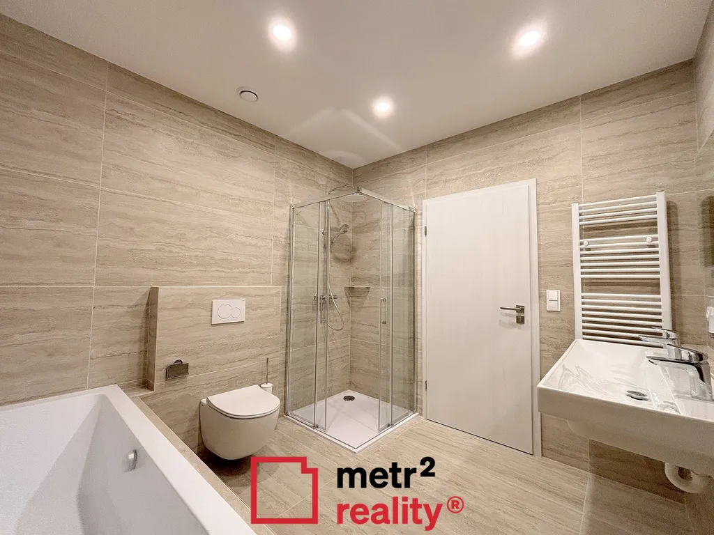 Nabízíme Vám k pronájmu moderní novostavbu zděného přízemního pasivního rodinného domu v obci Hnojice. Dispozice domu je 4+kk s celkovou užitnou plochou 97 m2 a pozemkem o celkové výměře 633 m2. Dům v řadové zástavbě s terasou 25 m2 je nepodsklepený, ze které je krásný výhled na Jeseníky. Vytápění domu je řešeno pomocí teplovodního systému, který obsahuje tepelné čerpadlo typu vzduch-voda, které zajišťuje pokrytí tepelných ztrát objektu. Součástí tepelného čerpadla je i zásobník na TUV. Ve všech místnostech RD je podlahové vytápění, které je v koupelně doplněno o topný žebřík. Součástí systému je také centrální rekuperační jednotka, jež zajišťuje přívod čerstvého vzduchu do obytných místností a odvod znehodnoceného (odpadního) vzduchu z koupelny, WC a kuchyně. FVE elektrárna, 3 panely na střeše, jednofázový střídač. Na zahradě je umístěna retenční podzemní nádrž pro sběr a následné využití dešťové vody s kapacitou 8 m3. Dešťová voda je využita na splachování WC a zálivku zahrady. Dům je napojen na vodu z lokálního zdroje, kanalizace obecní. Komfortní parkování pro dvě vozidla před domem s nabíjecím systémem pro elektro vozy. Cena nájemného činí 30.000 Kč měsíčně +3.500 inkaso. Dům je volný od 1.2.2026. PENB skupiny A.