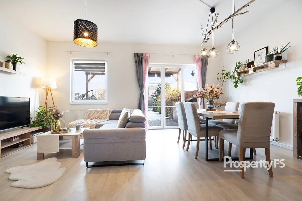 K domu náleží zahrada se zastřešenou terasou, zahradním domkem, grilem a venkovní sprchou. Kousek od nemovitosti se nachází naučná stezka a biokoridor. Přímo v obci pak naleznete základní a mateřskou školu, dětské hřiště, obecní úřad či Retail park s obchody jako například Billa, Popeys, McDonald`s, Pepco nebo Super zoo.