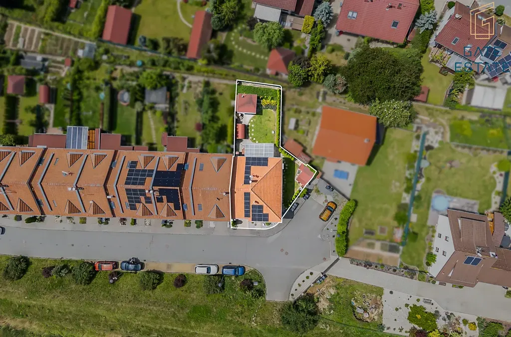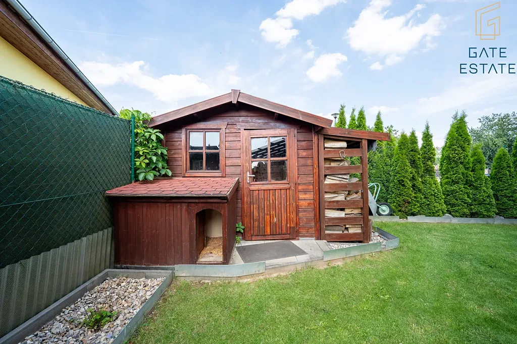 Zahrada je navržena tak, aby nabízela maximum soukromí i možností k relaxaci. Kromě terasy s pergolou zde najdete ještě jednu větší pergolu s posezením u grilu, ideální pro rodinné oslavy a setkání s přáteli. Pro odpočinek a regeneraci slouží finská sudová sauna a otužovací sud. Součástí zahrady je rovněž zahradní domek pro uskladnění venkovního vybavení. Parkování je zajištěno v garáži a další parkovací místa jsou k dispozici přímo před domem.