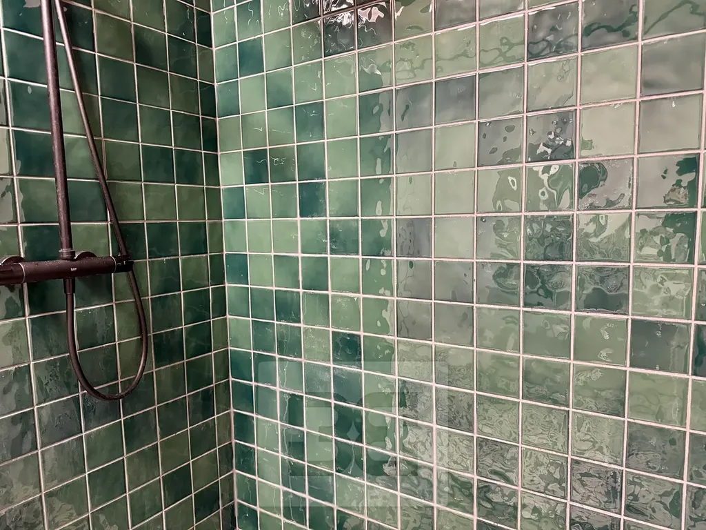 ručně vyráběné obklady typu zellige v sytě zeleném odstínu