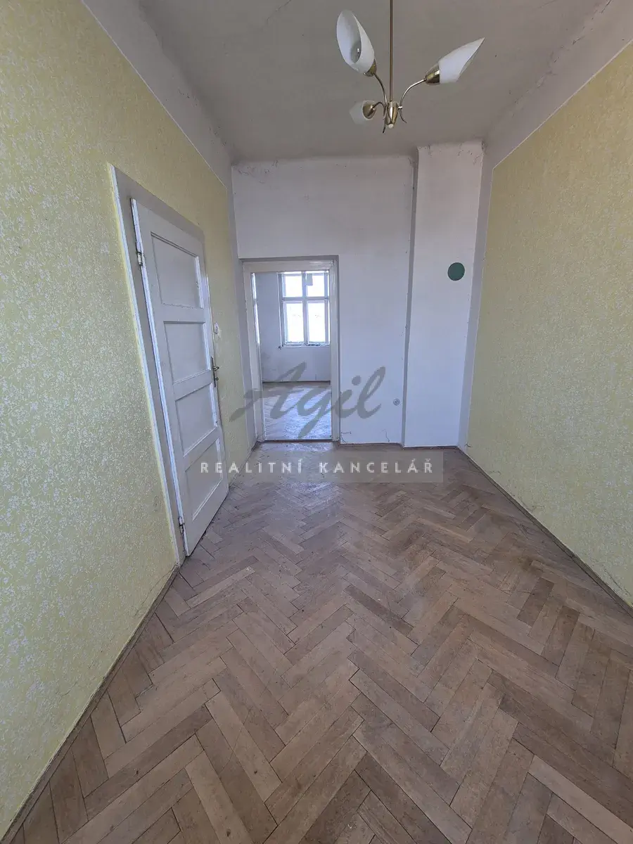 Chodbička 2 m2, samostatné WC 1 m2, koupelna 2 m2, kuchyně 10 m2 se vstupem na balkon, pokoj do ulice 16 m2, pokoj do zahrady 11 m2.