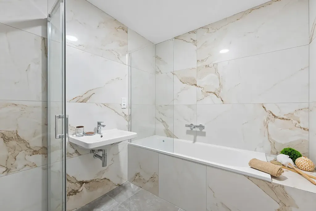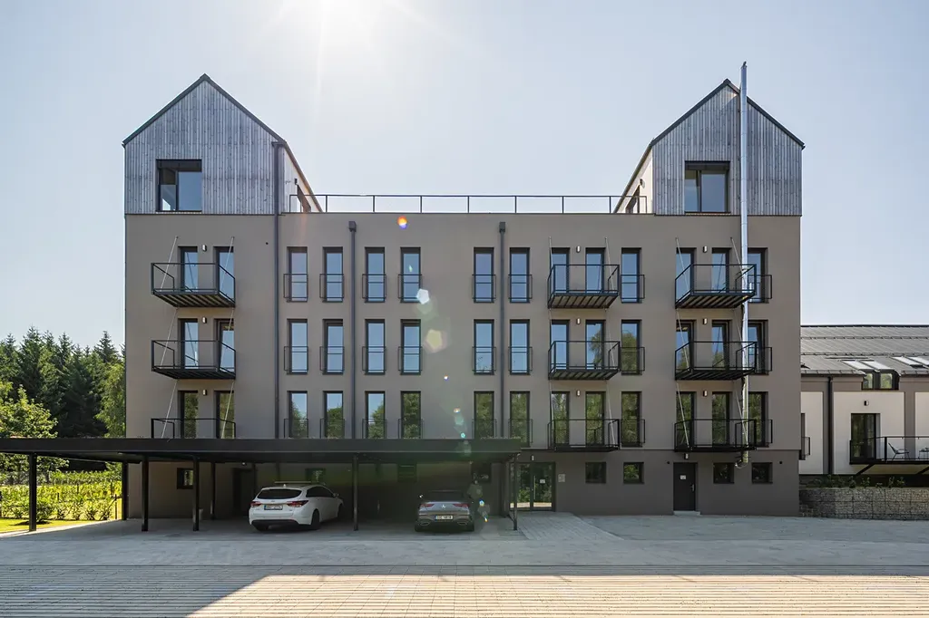 Všechny byty v projektu mají vysoký standard vybavení: kvalitní vinylové podlahy s akustickou podložkou, teplovodní podlahové vytápění, francouzská okna s izolačním trojsklem, moderní sanita značky Grohe, velkoformátové obklady v koupelnách atd.