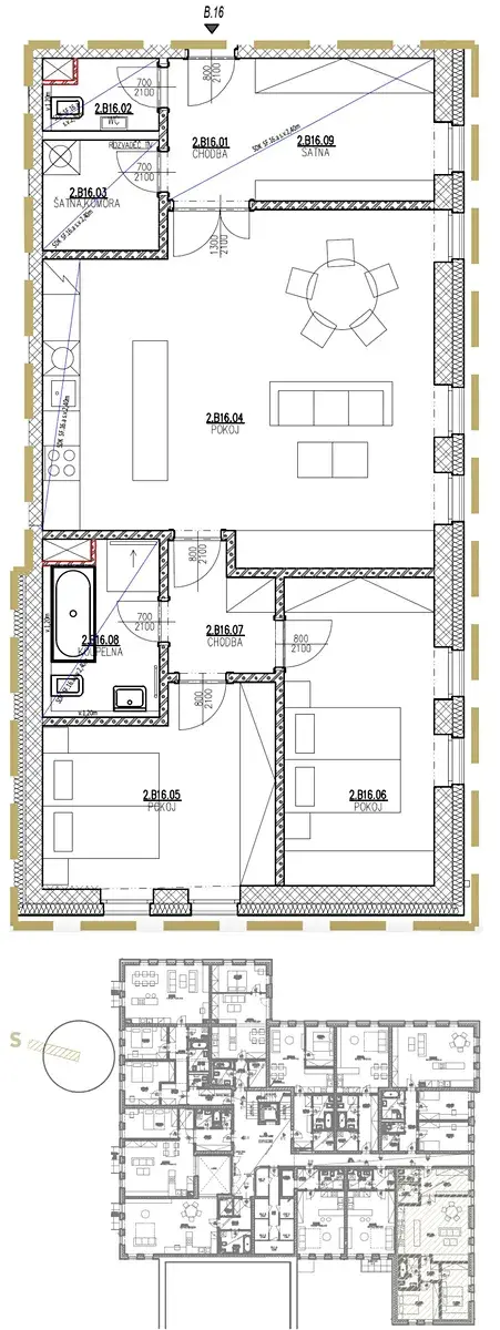 Nabízíme k prodeji velkorysý byt B16 o dispozici 3+kk a celkové výměře 96,5 m² dle NOZ (čistá užitná plocha 90,9 m²). Byt se nachází v 2. podlaží a je orientován převážně na jihozápad. Byt disponuje, mimo jiné, technickou místností a velkou předsíní s možností přepažení na další pokoj/pracovnu, samozřejmostí je i sklepní kóje o velikosti 2,1 m². Cena zahrnuje i parkovací stání – vše je uvedeno včetně DPH.