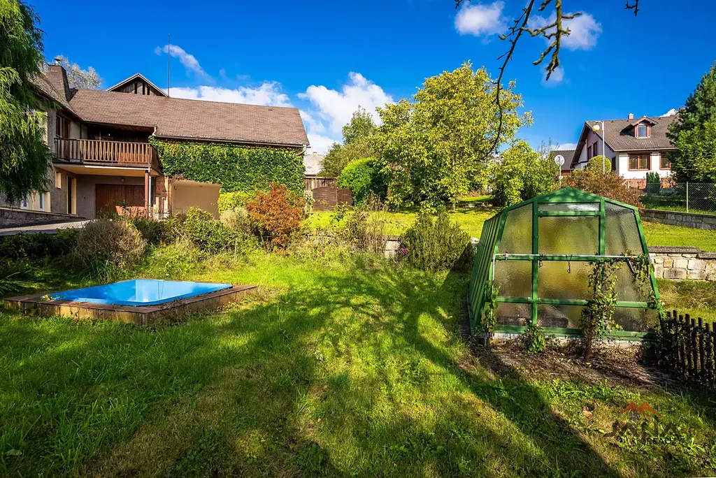 Velkorysý pozemek o výměře 1982 m² nabízí prostornou a rozmanitou zahradu, která poskytuje příjemné zákoutí k relaxaci a posezení. Dům stojí uvnitř zahrady a není přímo u hlavní silnice, což zajišťuje soukromí. Zahrada je osázena různými vzrostlými a ovocnými stromy a keři. Součástí zahrady je bazének, skleník a venkovní posezení.