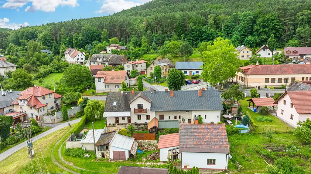 Součástí prodeje je také podíl 6/25 na pozemku parc. č. 593/7 o výměře 283 m², což odpovídá 67,92 m². Tento pozemek slouží jako příjezdová cesta k domu.