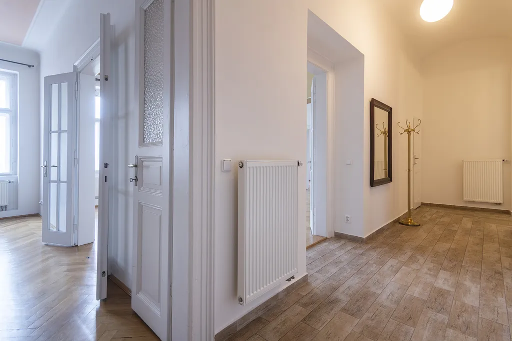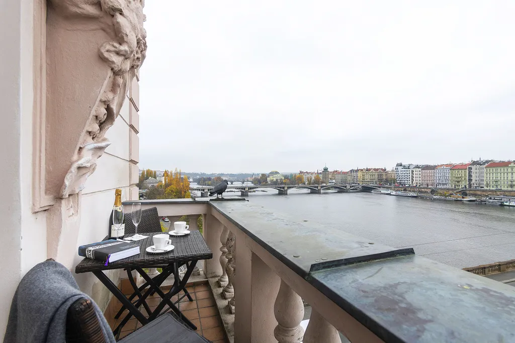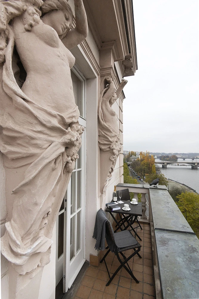 Nabízíme k pronájmu krásný a velmi prostorný byt 5+1, 205 m², ve 2. patře novorenesančního činžovního domu na rohu ulic Lidická a Hořejší nábřeží v Praze 5. K dispozici je pět velkých pokojů, které poskytují nádherné výhledy na Pražský hrad, Národní divadlo, Vyšehrad a povodí Vltavy, dva z pokojů mají vlastní balkón směrem k řece Vltavě, jeden balkón již zařízen příjemným posezením. V bytě je dále plně vybavená samostatná kuchyň (lednice, mrazák, myčka, sporák s troubou a digestoří, mikrovlnka) se spíží a vstupem na balkón orientovaný do klidného vnitrobloku, koupelna s vanou s sprchovým koutem, samostatná toaleta s umývátkem, dvě komory a velká vstupní chodba. Byt se nabízí nezařízený kromě kuchyňské linky se spotřebiči, pračky v koupelně a starožitné vestavné skříně v jednom z pokojů. Na podlaze kombinace původních dubových parket a dlažby. Dřevěná špaletová okna, vysoké stropy a mnoho historických detailů činí tento byt unikátním. Vytápění a ohřev vody plynovým kotlem. K dispozici optika pro připojení internetu. Samotný dům v minulosti rovněž citlivě renovován s důrazem na zachování původních prvků, bez výtahu.
