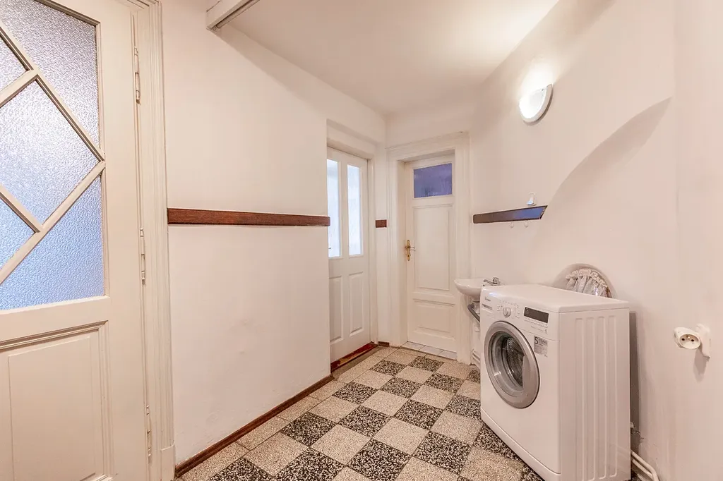 Byt je částečně vybaven prvorepublikovým nábytkem v obytných místnostech, krásnými kachlovými kamny (nejsou funkční). Podlahy renovované parkety a původní dlažba. Okna jsou již nová plastová včetně žaluzií a kuchyňská linka moderní včetně spotřebičů.
