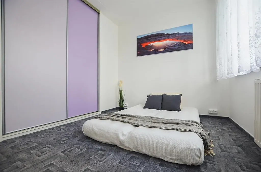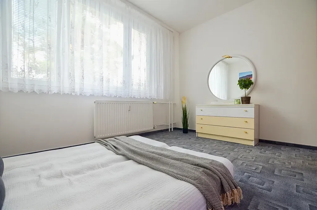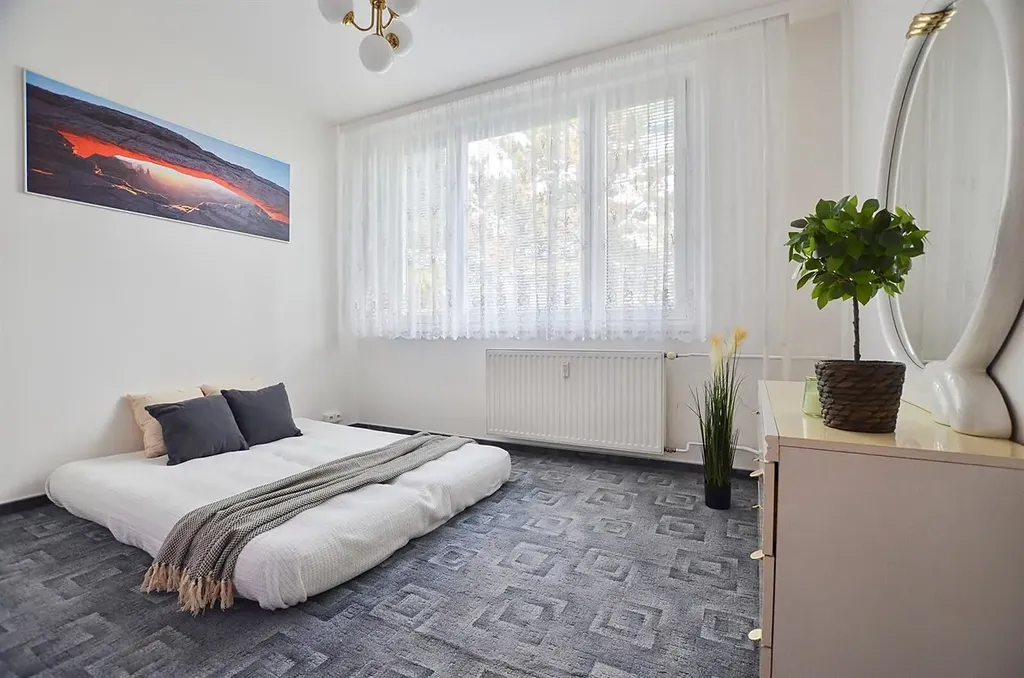 Byt je po rekonstrukci a v udržovaném stavu. Pronajímá se částečně vybavený: lednice, pračka, sedací souprava, obývací stěna, vestavěné skříně, jídelní stůl s židlemi atd.