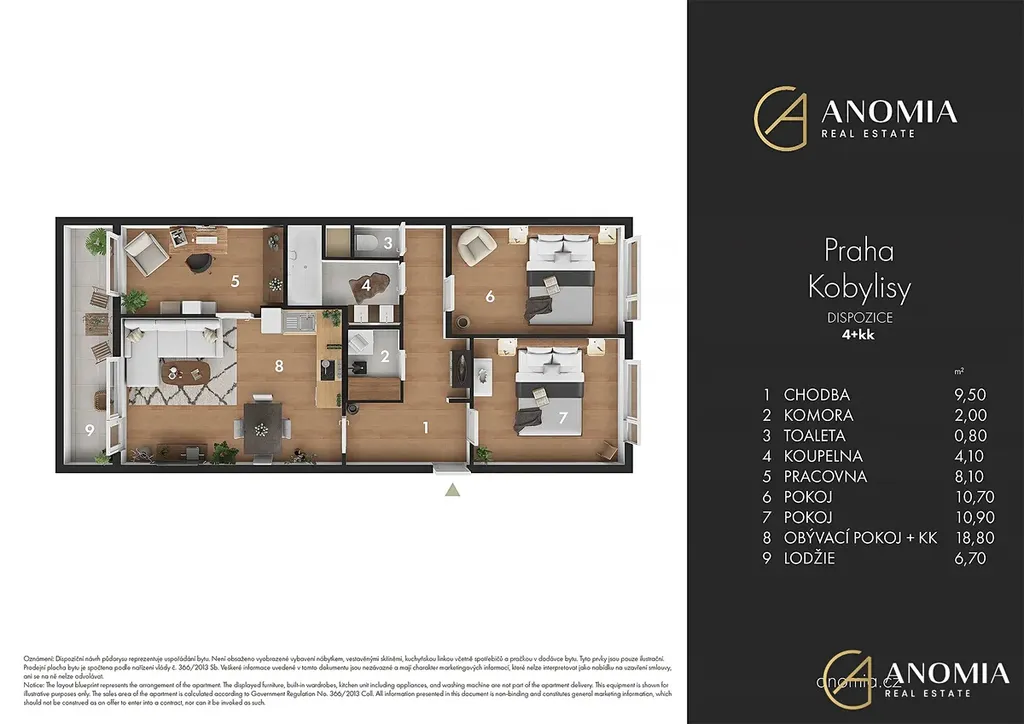V bytě dále najdete 3 samostatné, neprůchozí pokoje, které lze využít jako ložnici, dětské pokoje nebo pracovnu, koupelnou, oddělené WC a technickou místností s místem na pračku i sušičku. Koupelna zaujme elegantním designem – velkoformátové obklady, podsvětlené niky a kvalitní materiály vytvářejí nadčasový a harmonický dojem.
