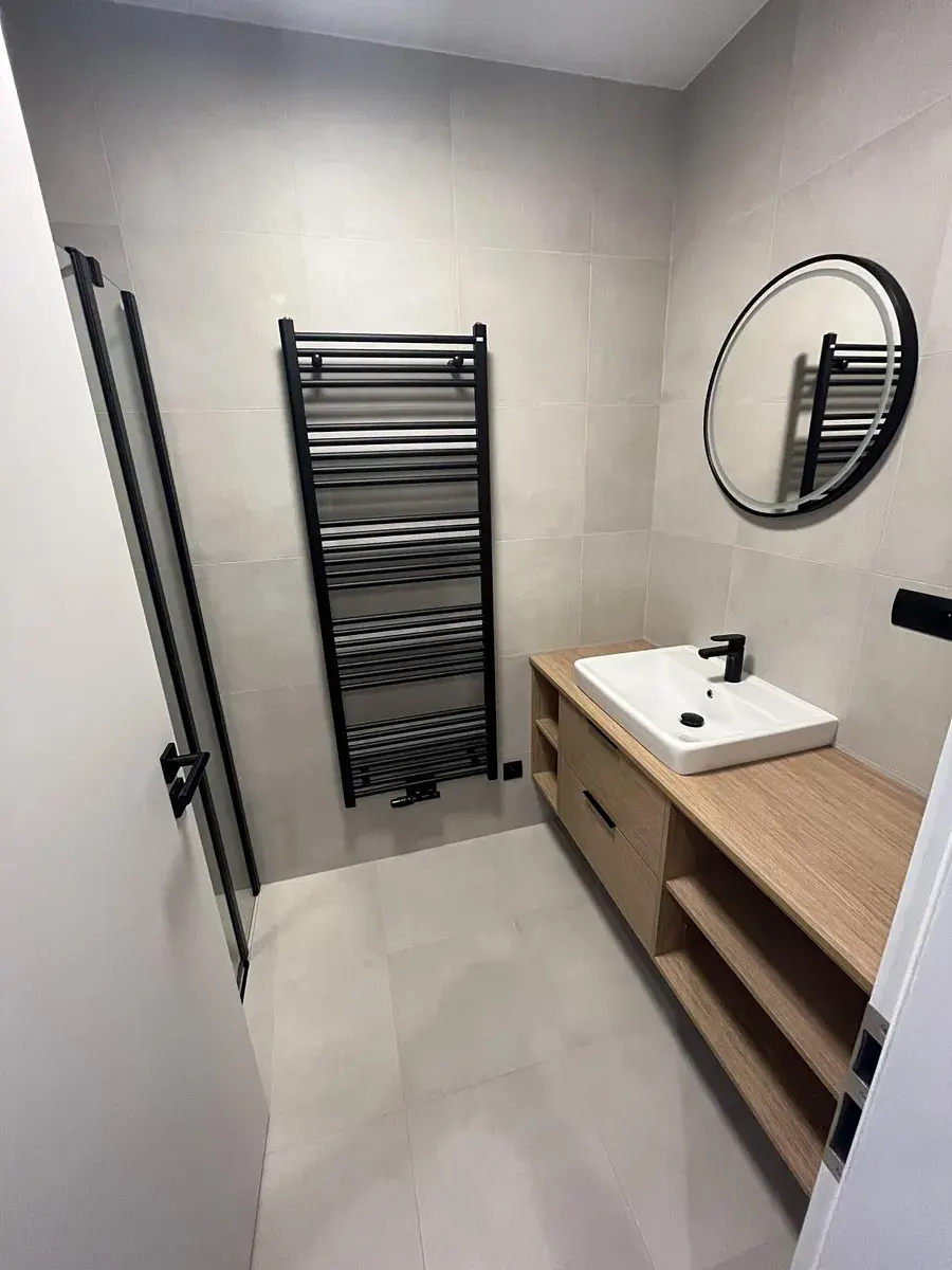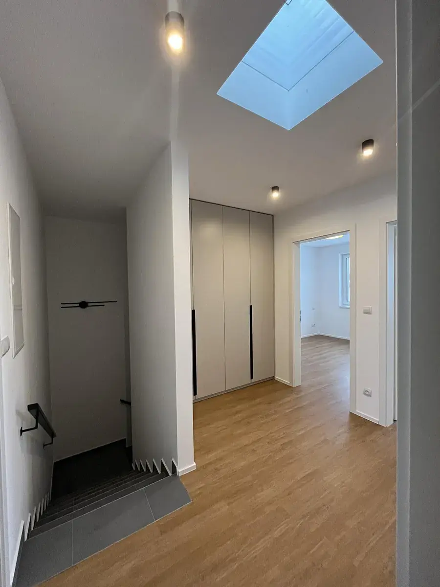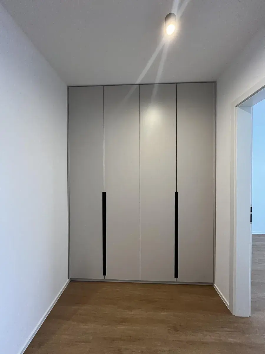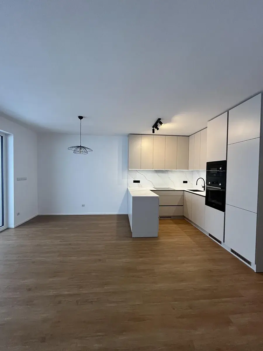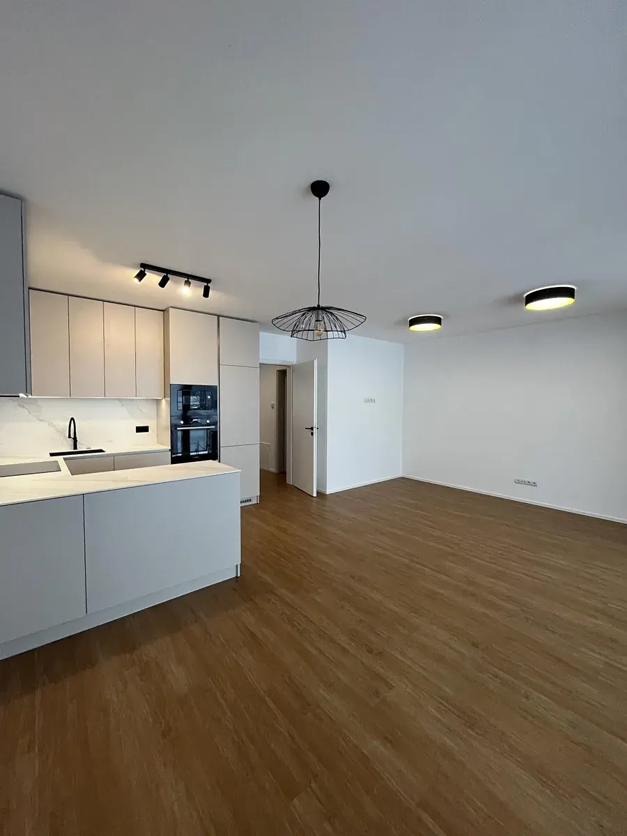 Byt je vybaven moderní kuchyňskou linkou s vestavěnými spotřebiči (lednice s mrazákem, myčka, digestoř, indukční varná deska, mikrovlnka, trouba) a velkou vestavnou skříní v chodbě, která nabízí dostatek úložných prostor.