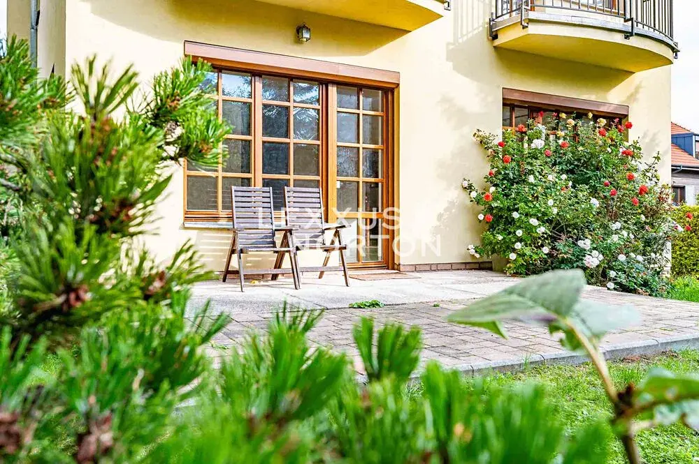 Vila o velikosti 316 m2 se skládá ze suterénu s garáží, dvou nadzemních podlaží a podkroví. V přízemí se nachází vstupní hala, prostorný obývací pokoj, kuchyň, koupelna a samostatná toaleta. V prvním patře naleznete 3 ložnice, koupelnu s rohovou vanou, samostatnou toaletu, halu a dva slunné balkony, v podkroví jsou 2 ložnice, koupelna a hala. K domu náleží vzrostlá udržovaná zahrada o ploše 950 m2 a dvě parkovací stání na pozemku.