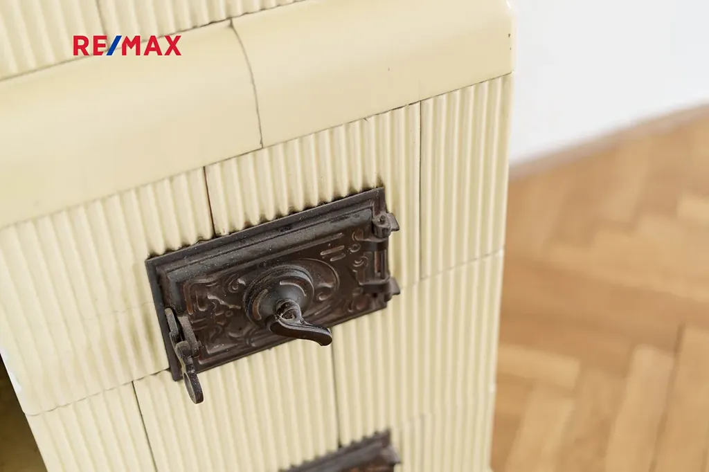 Kuchyně (12 m2) by byla po úpravě velmi pěknou rodičovskou ložnicí s prvním z balkonků (1,3m2). Místnost přímo sousedí s dalším prostorem s přístupem denního světla. Ten by šel využít jako pracovna nebo šatna. Vedlejší pokoj s kamny (26,62) je velmi prostorný a byl by pěkným společným pokojem pro více dětí.