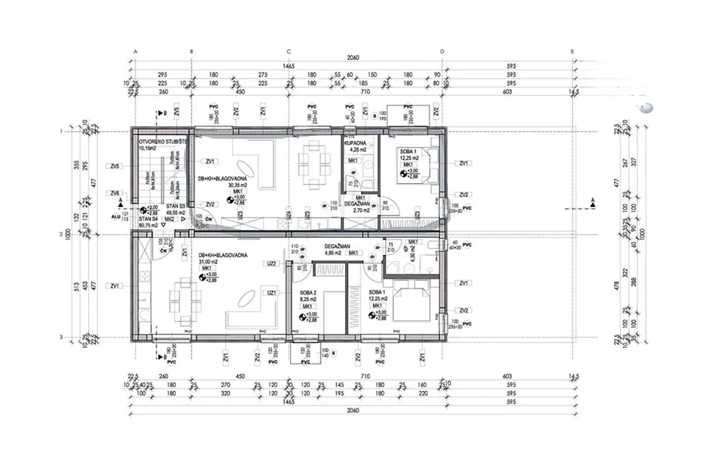 Projekt je možné zakoupit také jako celek – čtyři apartmány v jednom domě.