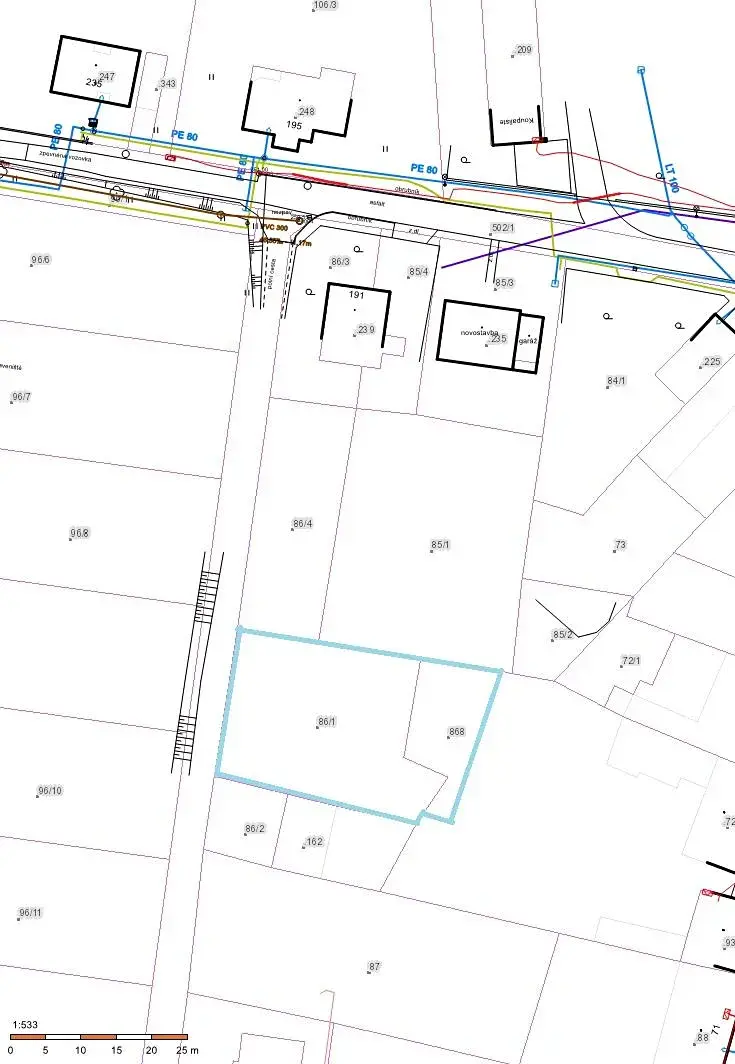 - pozemek 86/1, o výměře 601 m2, druh pozemku: zahrada