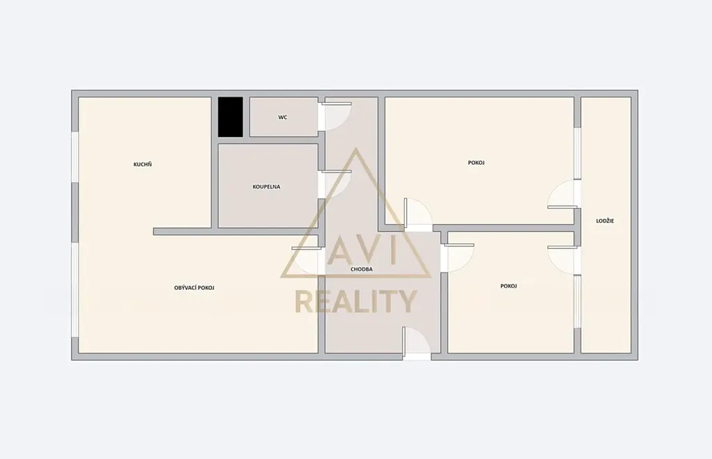 Byt má velmi praktické a žádané neprůchozí uspořádání. Dispozice zahrnuje vstupní chodbu s vestavěnou šatní skříní, dvě samostatné ložnice orientované na severozápadní stranu, přičemž z obou je přímý vstup na lodžii. Obývací pokoj a samostatná kuchyně jsou orientovány na jihozápad, s možností odstranění sádrokartonové příčky a vytvoření velkého, otevřeného a světlého obytného prostoru s krásným výhledem.