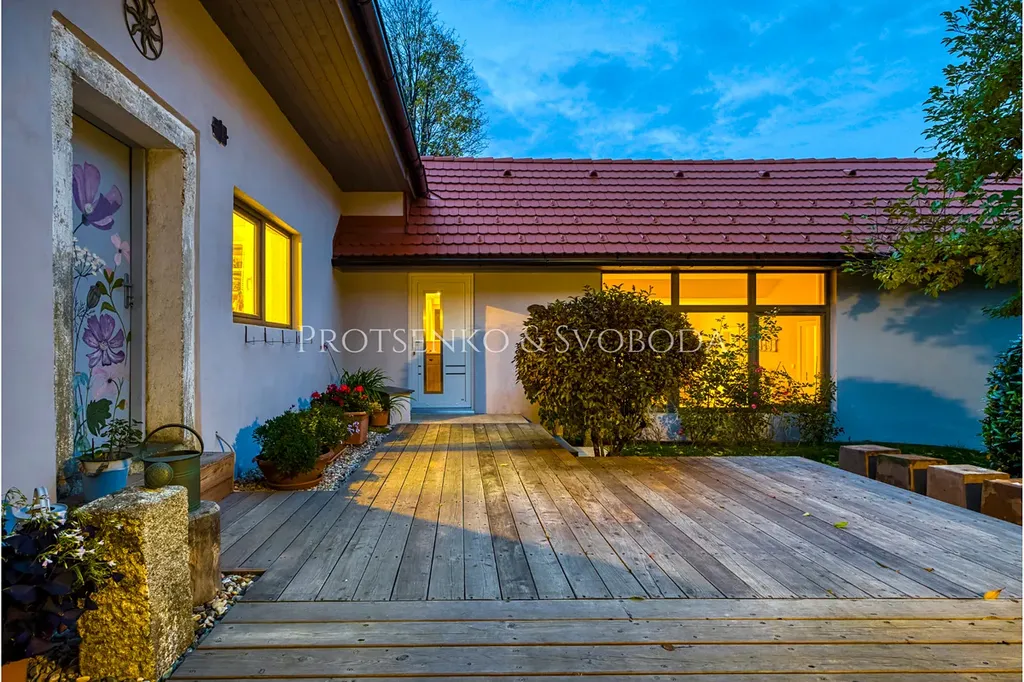 Spol. Protsenko & Svoboda v zastoupení majitele nabízí k prodeji jedinečný dům o celkové užitné ploše cca 354 m², nacházející se v klidné obci Stajiště na Vysočině. Pozemek o výměře 2 604 m² skrývá nejen krásný dům, který má díky své dispozici mnoho využití, ale také zahradu, která byla více než půl století tvořena umělcem, který převážně pracoval se sklem a kovem.