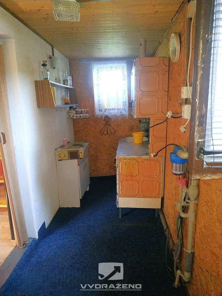 Předmětem prodeje formou elektronické aukce je patrová chatka v klidné, okrajové části obce Dobronín, u Jihlavy. Místo, které přímo vybízí k relaxování a klidnému pobytu, který si budete moci užít na ploše 48 m2 v dispozici 3+1 a pozemku s celkovou výměrou 258 m2. Samotná chatka nyní nabídne v přízemí vstupní chodbu, pokoj, kuchyňku a koupelnu s rohovou vanou a v podkroví další 2 pokoje. Nemovitost není zcela vyklizena a prodává se tak, jak stojí a leží. Stavba je převážně zděná z pórobetonových tvárnic a částečně dřevěná. Vnitřní omítky jsou štukové, v části obití OSB deskami. Okna jsou dřevěná s dvojsklem. Do objektu je zavedena elektřina (v současné době odpojena), voda je přivedena z vlastní studny, svod splašků je řešen septikem. Přístup je zajištěn po obecní travnaté komunikaci. Mimo chatky se na pozemku nachází kolna a kůlna. Ani jedna ze staveb není aktuálně zakreslena na katastru nemovitostí. Dodatečné zkolaudování chatky, včetně zanesení do katastru nemovitostí je již v řešení, to celé v hodnotě 60.000 Kč je součástí kupní ceny. O vše se stará projekční kancelář v Havlíčkově Brodě. V okolí se nachází pár dalších chat a malých domků. Pokud jste milovníci přírody, bude toto místo ideální pro vás. Přitom pouhých cca 11 km od Jihlavy, kde se nachází veškerá občanská vybavenost. V Dobroníně se nachází obecní úřad, zdravotnické středisko, pošta, restaurace, obchod, pivovar, základní škola. Milovníci sportu určitě ocení místní workoutové hřiště, hřiště, skatepark, hasičské hřiště, atd. Pokud raději relaxujete na procházce, tak vás nedchne přítomnost rybníků a množství lesních tras. Kulturní akce jsou pořádány v místním kulturním domě. Spojení je možné například vlakem do Havlíčkova Brodu, Jihlavy. Pro více informací nás kontaktujte.