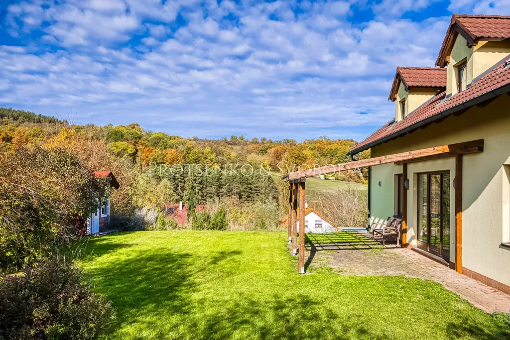 Na okraji obce Mořina, v malebné krajině Českého krasu jen pár minut od Karlštejna, stojí dům, který spojuje klid venkova s blízkostí Prahy. Obklopen loukami, lesy a cyklostezkami, nabízí prostor pro skutečný domov – místo, kde ráno voní po čerstvém vzduchu a večery patří západům slunce nad okolními kopci. Pokud hledáte rovnováhu mezi přírodou a dosažitelností města, tady ji najdete.