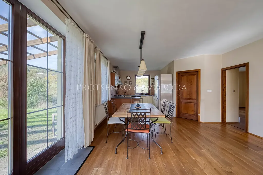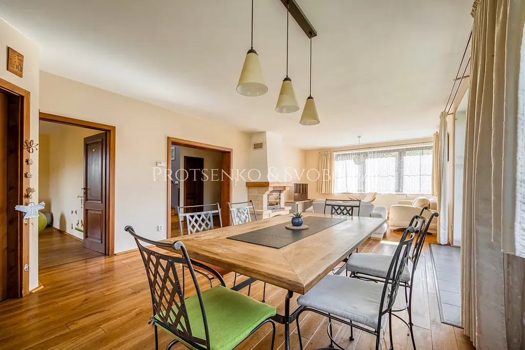 Společnost Protsenko & Svoboda vám v zastoupení majitele nabízí prodej rodinného domu v Mořině. Dům s užitnou plochou 239 m² (včetně garáže 29,25 m²) stojí na prostorném pozemku o výměře 1300 m².