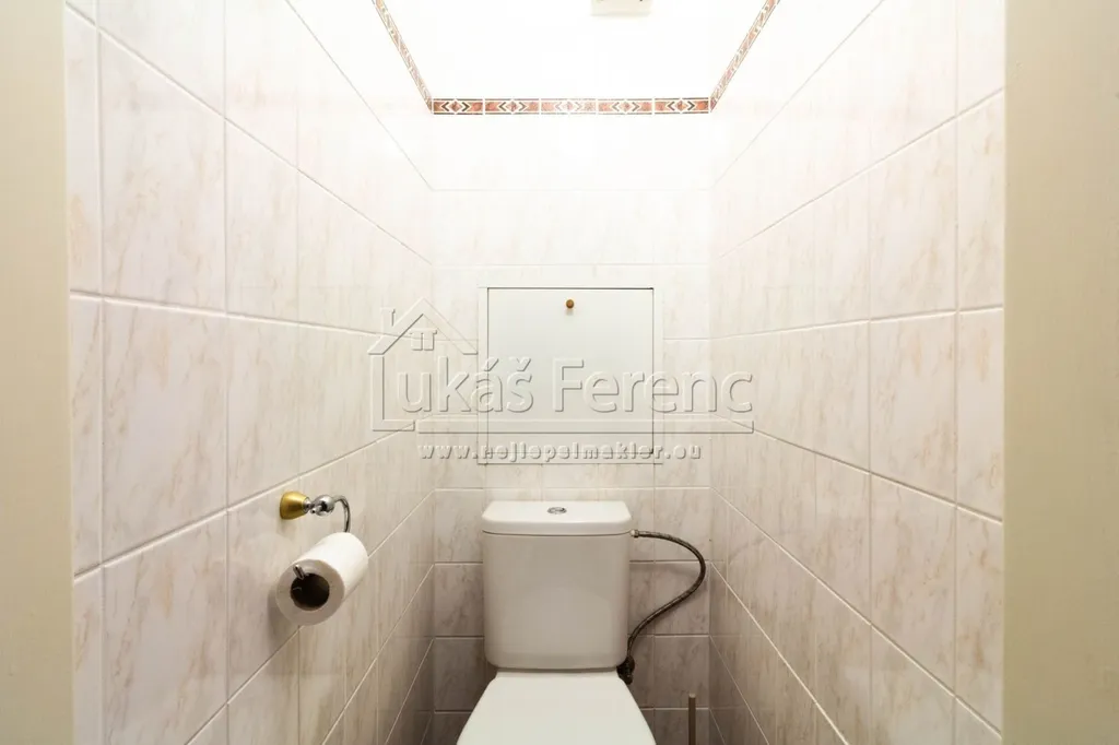 Velkým benefitem je nadstandardně prostorná koupelna s rohovou vanou, která působí vzdušně a komfortně. WC je samostatné.
