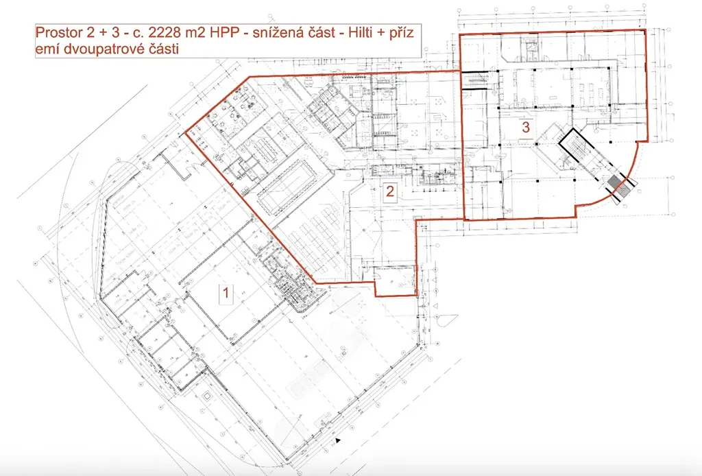 - plocha přízemí až 2.228m2 s možností oddělení cca na 2870m2 a cca 1003m2 využitelné jako showroom+kanceláře, servisní centrum, obchod, školící centrum, zákaznické centrum nebo sklad, v místech světlé výšky stropu nad 5m