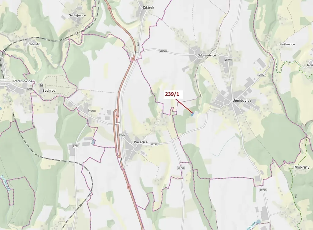 Lesní pozemek o výměře 1872 m2, parcelní číslo 239/1, podíl 1/1, katastrální území Jenišovice u Jablonce nad Nisou, obec Jenišovice, obec s rozšířenou působností Turnov, okres Jablonec nad Nisou, Liberecký kraj. Po těžbě.