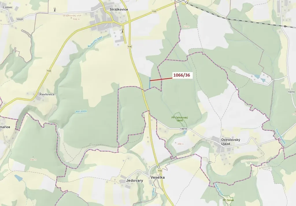 Lesní pozemek o výměře 1983 m2, parcelní číslo 1066/36, podíl 1/1, katastrální území Strážkovice, obec Strážkovice, obec s rozšířenou působností České Budějovice, okres České Budějovice, Jihočeský kraj. Po těžbě.