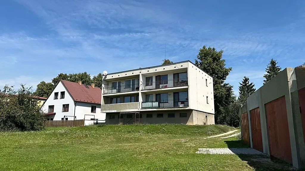 Ve výhradním zastoupení majitele nabízíme prodej světlého třípokojového bytu v osobním vlastnictví s prostornou lodžií a sklepem na okraji obce Dešov, okr. Třebíč.