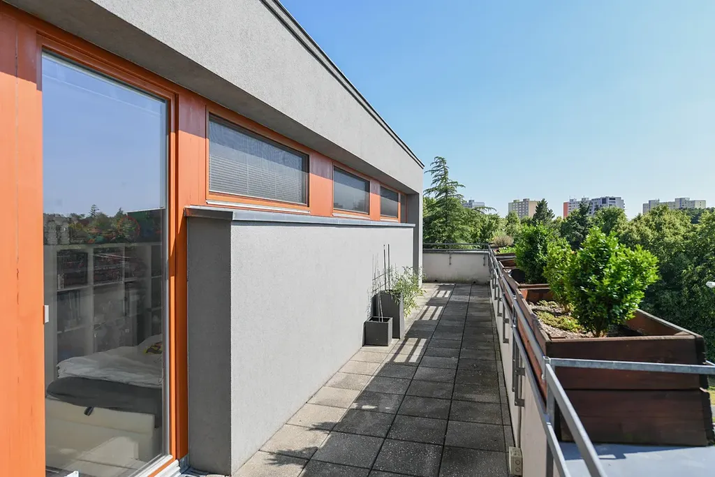 Nabízíme ke koupi moderní a světlý byt o dispozici 3+kk a podlahové ploše 73 m², situovaný v posledním 3. podlaží nízkopodlažní novostavby z roku 2013, v klidné ulici U Koupadel, Praha-Krč. K bytu náleží také dvě garážová parkovací stání a střešní terasa o rozloze 44 m², která poskytuje naprosté soukromí a nádherný výhled do zeleně a na město.